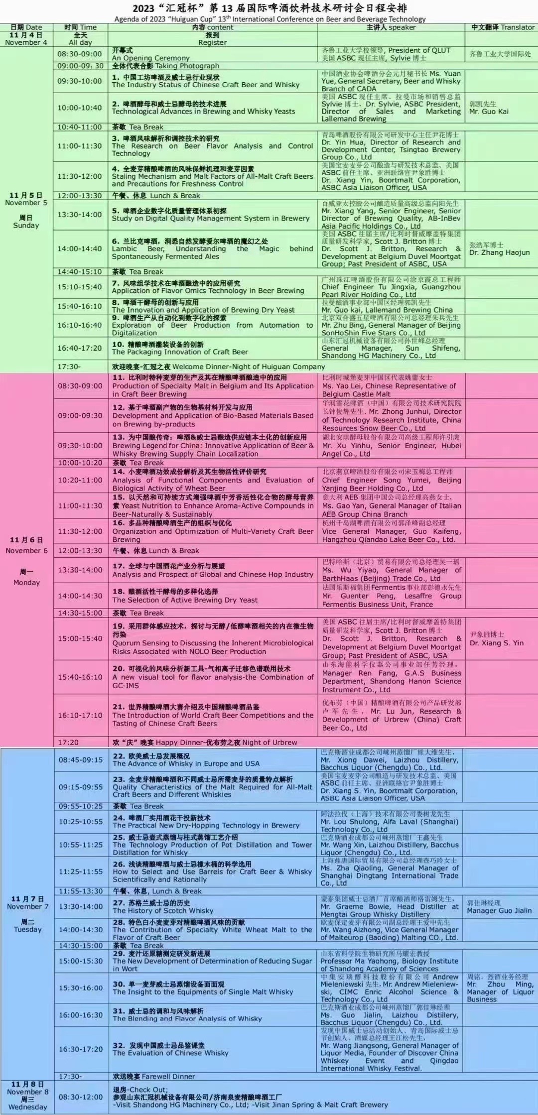 此屆技術(shù)會(huì)議的主要報(bào)告人都是世界著名的啤酒大師、威士忌專(zhuān)家、業(yè)界權(quán)威與營(yíng)銷(xiāo)高手,他們不但具有廣泛的專(zhuān)業(yè)理論知識(shí),而且擁有豐富的實(shí)踐經(jīng)驗(yàn),在他們各自的專(zhuān)業(yè)領(lǐng)域都卓有成就、業(yè)績(jī)非凡!